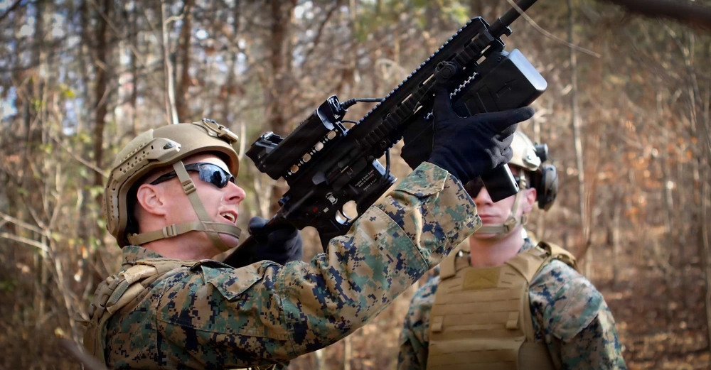 Image: US Marines from Marine Corps Base Quantico’s Provost Marshall Office employ weapons system during a New Equipment Training (NET) exercise to demonstrate the Organic – Counter Small Unmanned Aircraft Systems (O-CsUAS) capabilities PEO Land Systems is deploying directly to the fleet during a live training event on Marine Corps Base Quantico, VA. (US Marine Corps Photo by Addi Vander Velde)